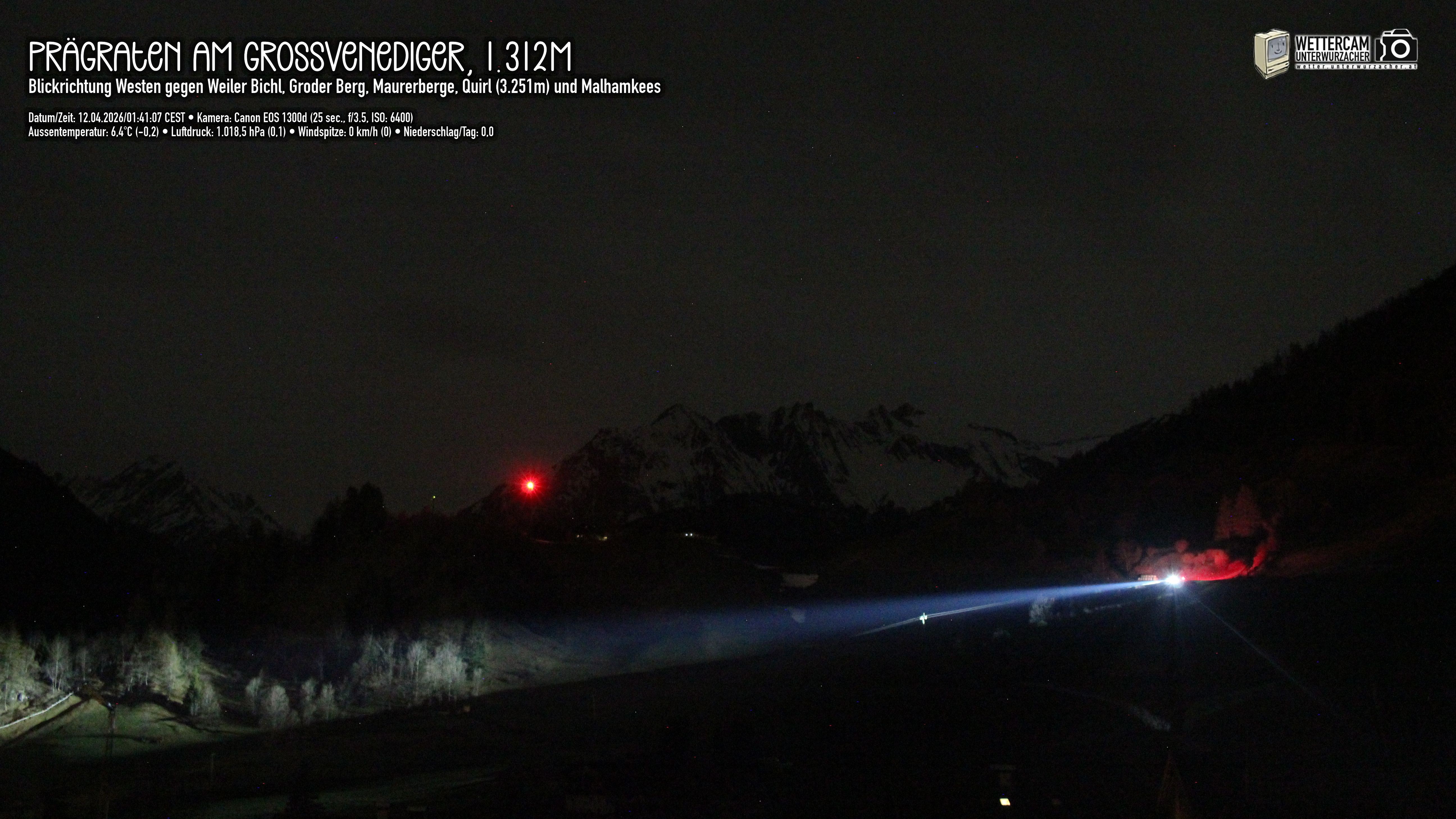 Archiviertes Webcam Bild: Prägraten am Großvenediger: Blick auf Bichl und die Maurer Berge am 12.04.2026 um 02:06 Uhr 02:00