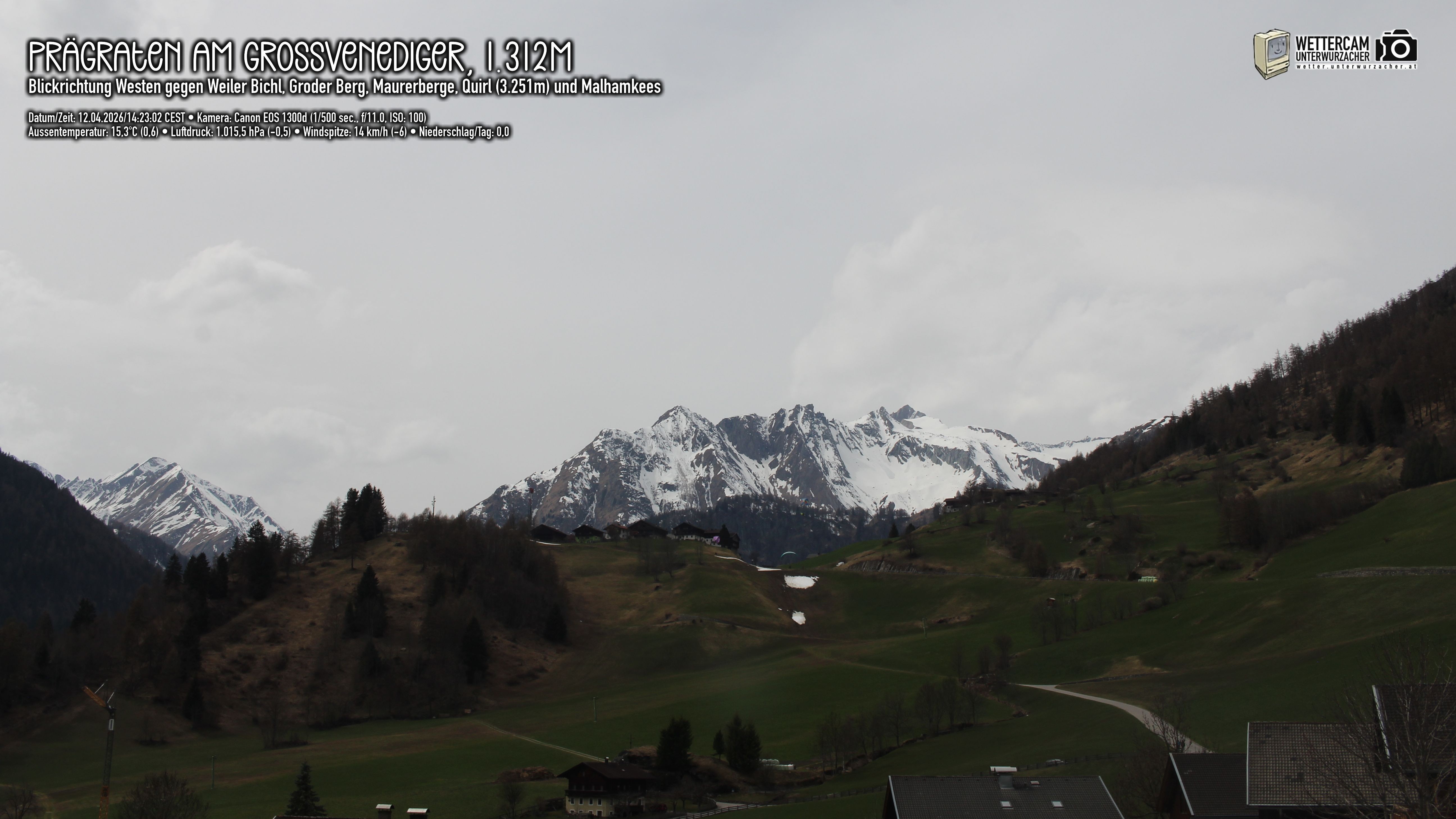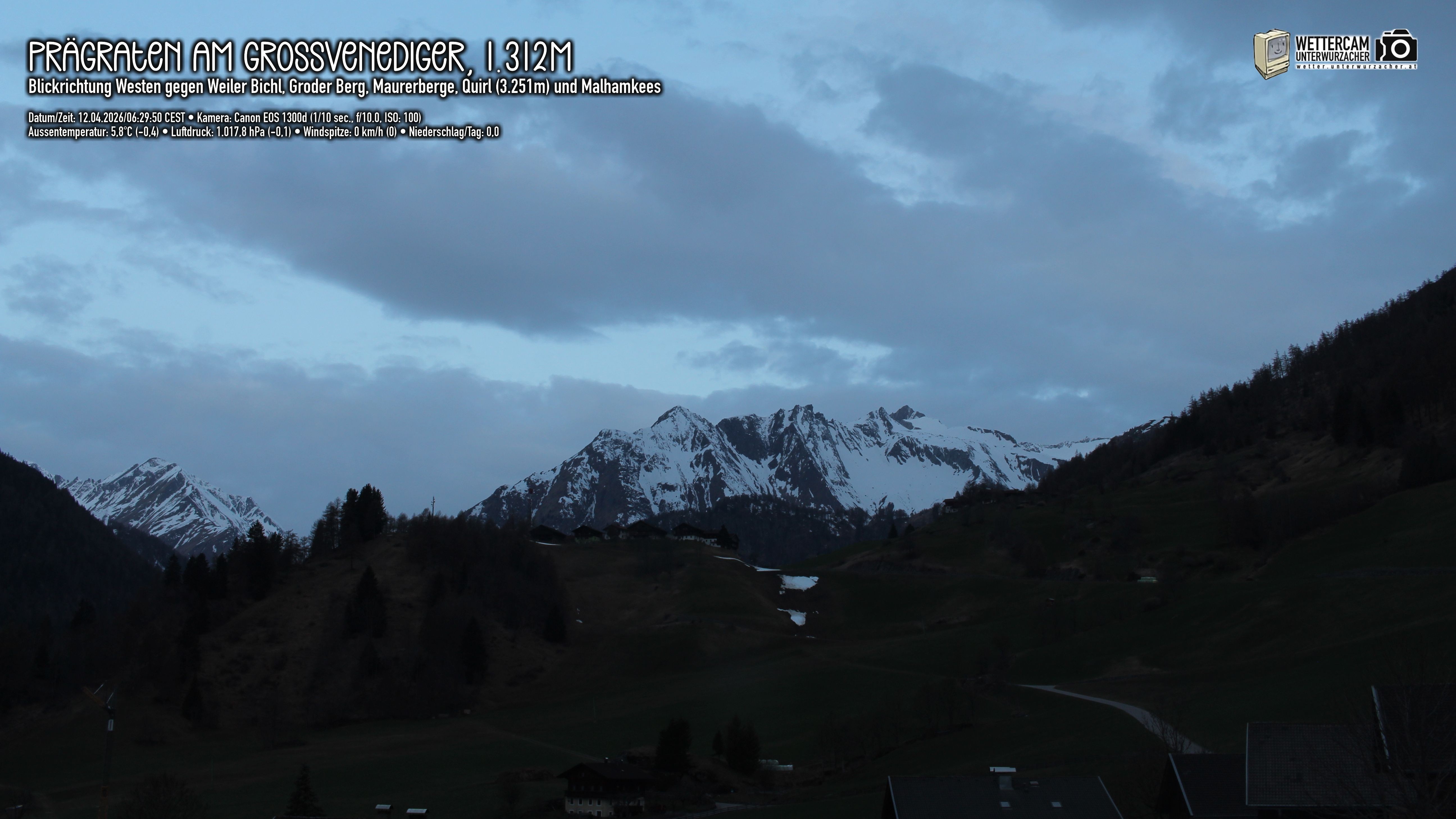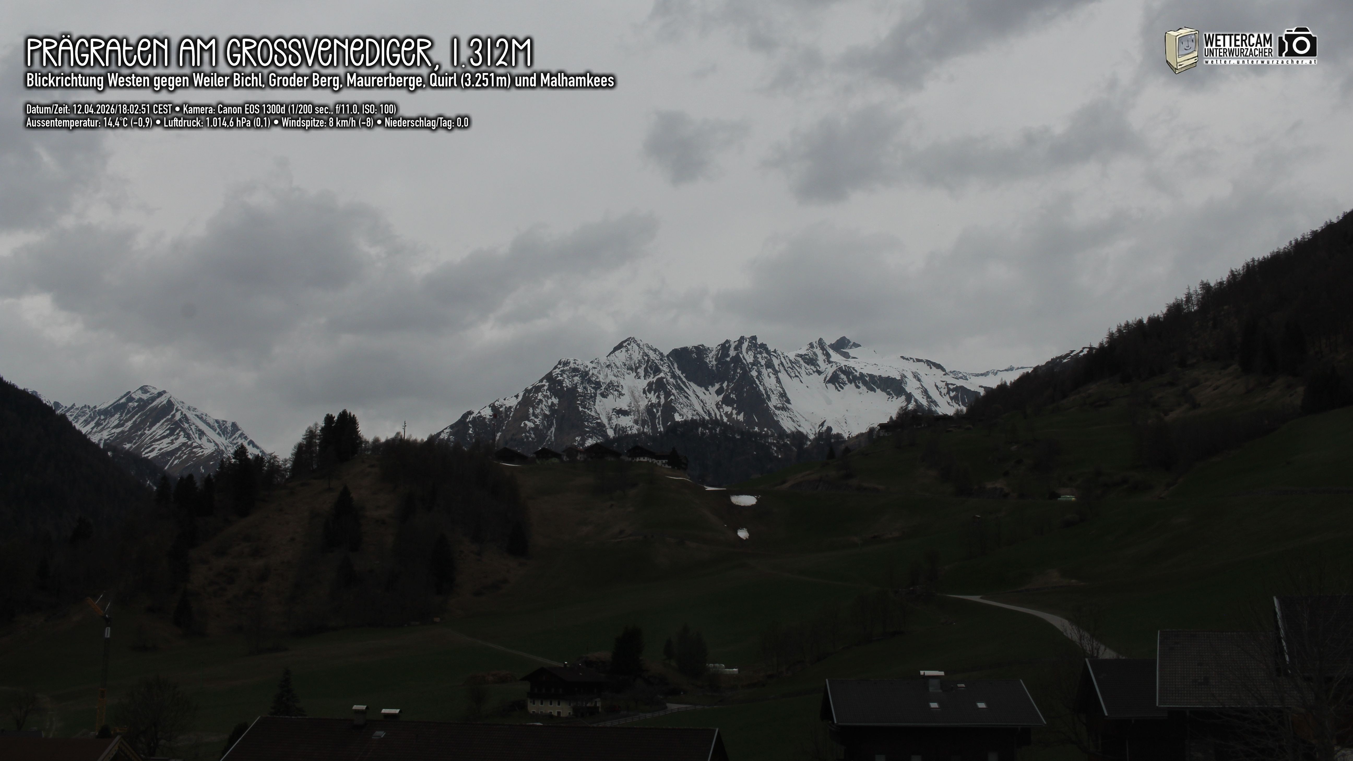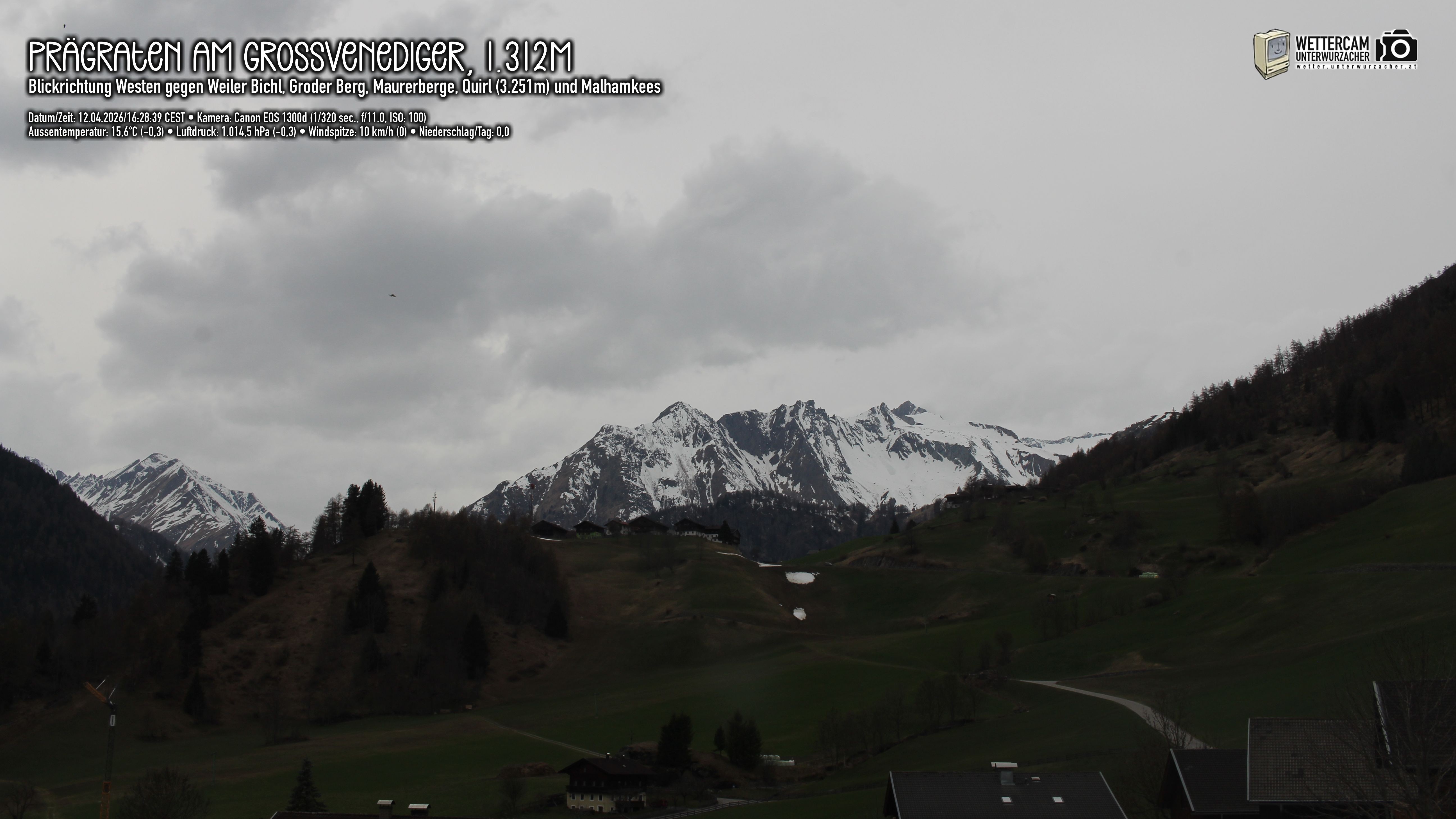 Archiviertes Webcam Bild: Prägraten am Großvenediger: Blick auf Bichl und die Maurer Berge am 12.04.2026 um 20:06 Uhr Aktuell