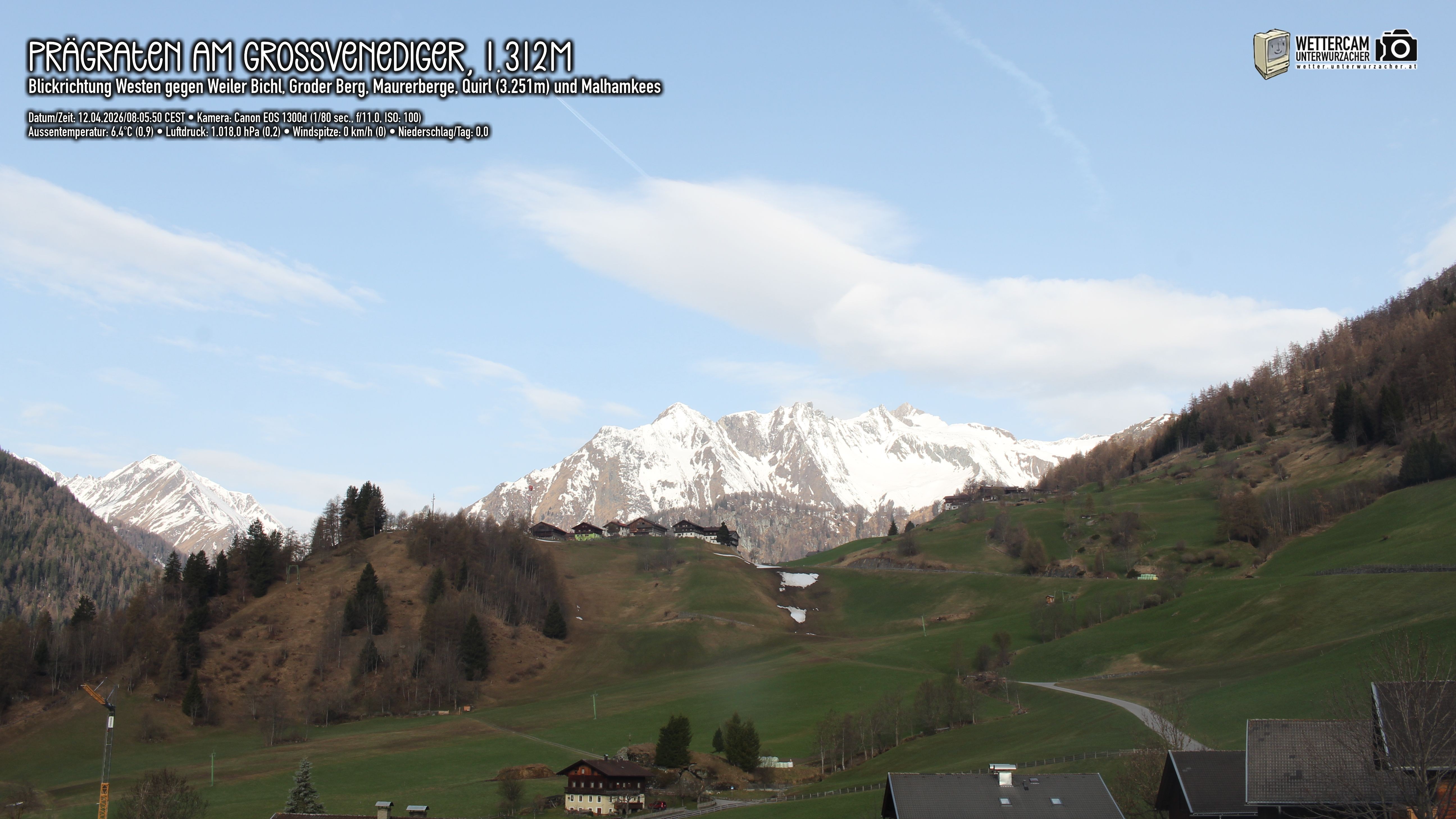 Archiviertes Webcam Bild: Prägraten am Großvenediger: Blick auf Bichl und die Maurer Berge am 12.04.2026 um 08:06 Uhr 08:00