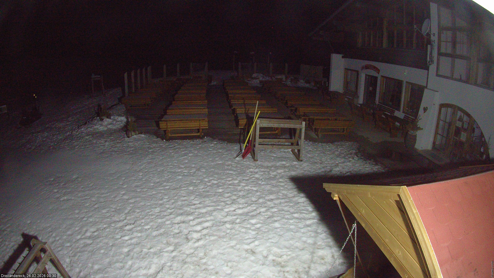 Archiviertes Webcam Bild: Skigebiet Dreiländereck: Bergrestaurant am 26 Feb 2026 um 02:11 Uhr 01:00