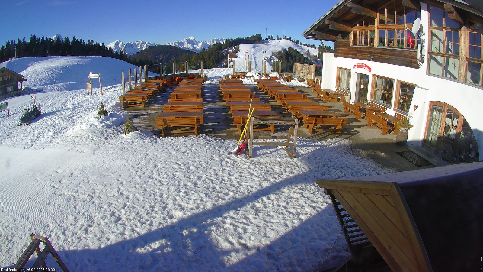 Archiviertes Webcam Bild: Skigebiet Dreiländereck: Bergrestaurant am 26 Feb 2026 um 10:11 Uhr 09:00