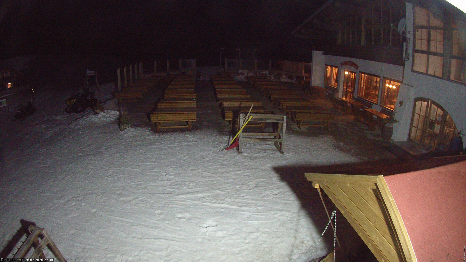 Archiviertes Webcam Bild: Skigebiet Dreiländereck: Bergrestaurant am 26 Feb 2026 um 00:11 Uhr 23:00