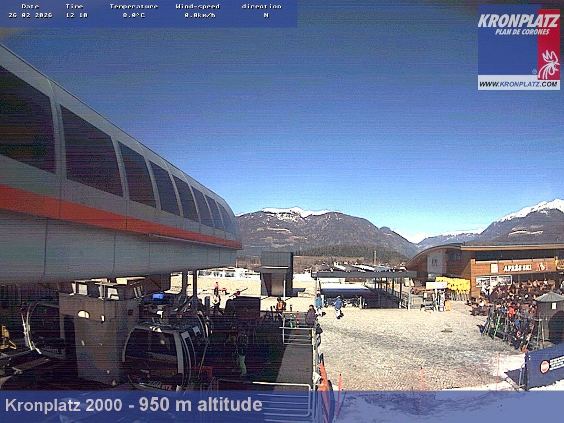 Archiviertes Webcam Bild: Kronplatz: Talstation Kronplatz I und II am 26 Feb 2026 um 12:44 Uhr 11:00