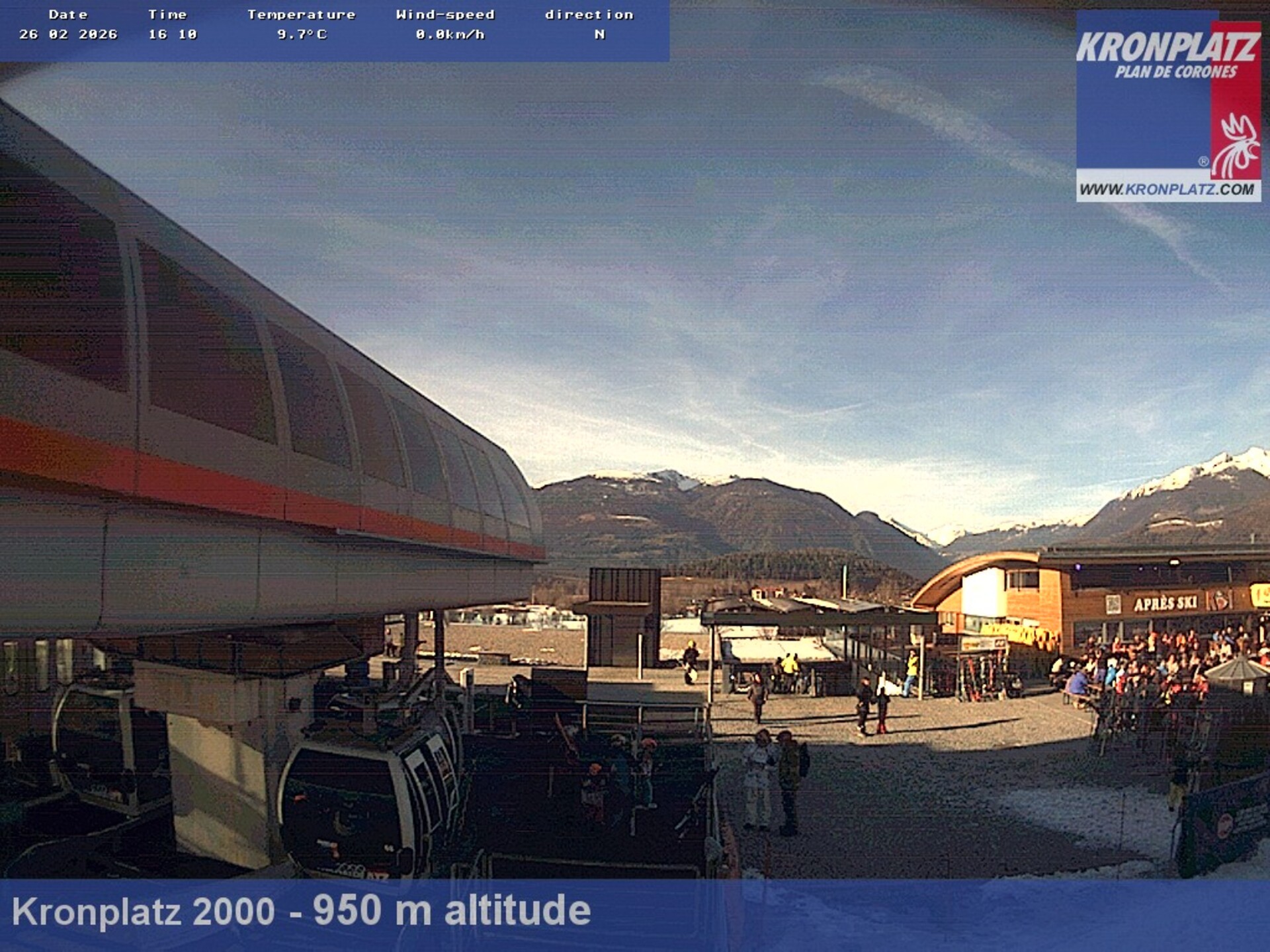 Archiviertes Webcam Bild: Kronplatz: Talstation Kronplatz I und II am 26 Feb 2026 um 18:44 Uhr Aktuell