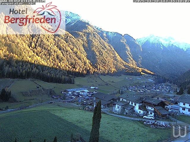 Diese Webcam eröffnet den Blick vom Hotel Bergfrieden auf die italienische Gemeinde Martell in Südtirol.