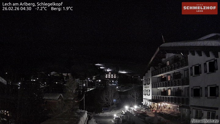Archiviertes Webcam Bild: Lech am Arlberg: Hotel Schmelzhof am 26.02.2026 um 04:39 Uhr 04:00