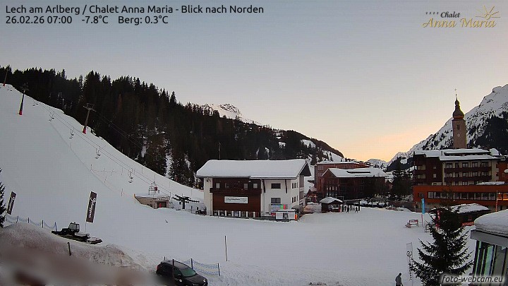 Archived webcam image showing Chalet Anna Maria in Lech on Feb 26, 2026 at 7:51 AM 01:00
