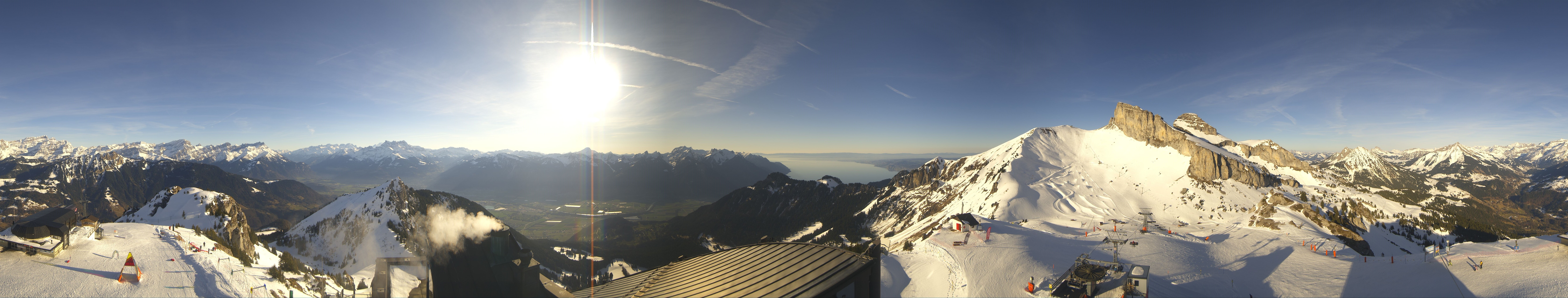 Die Roundshot-Cam befindet sich auf La Berneuse im Skigebiet Leysin an der Bergstation der Berneuse Gondelbahn in der Schweiz und bietet einen fantastischen 360-Grad-Blick auf das Skigebiet.