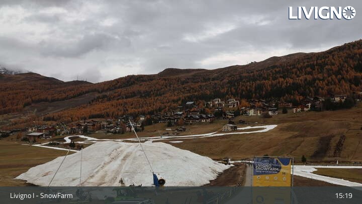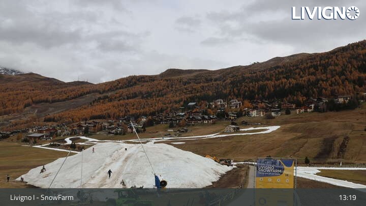 Hier siehst du die Snowfarm in Livigno. Der Schnee der Vorjahressaison wird konserviert, um damit die erste Loipe im Herbst zu präparieren. Zudem wird er für das jährlich im Sommer stattfindende Event "Trofeo delle Contrade" verwendet.