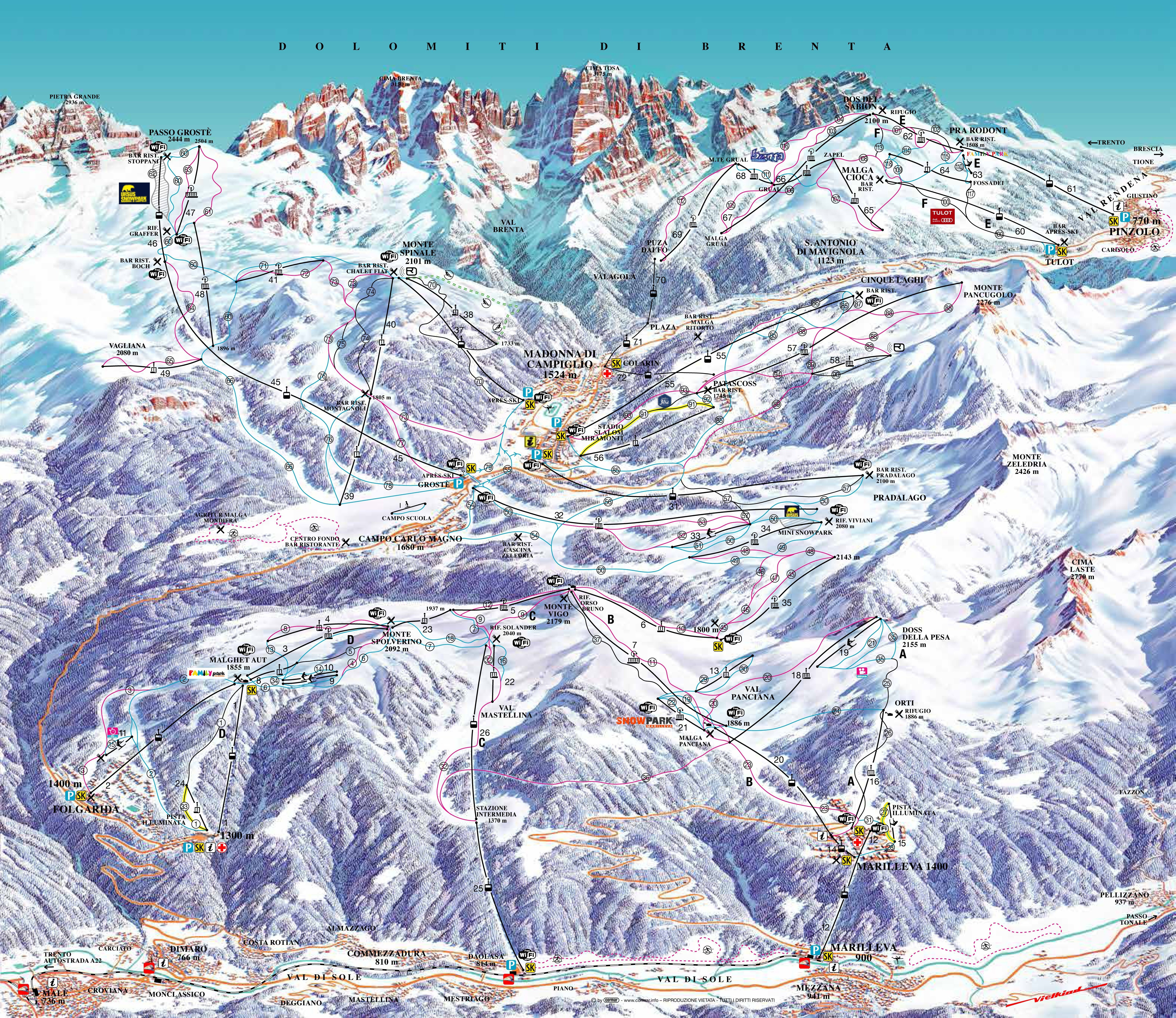 Langlaufgebiet Madonna di Campiglio in Madonna di Campiglio, Pinzolo, Rendena: Position auf der Karte