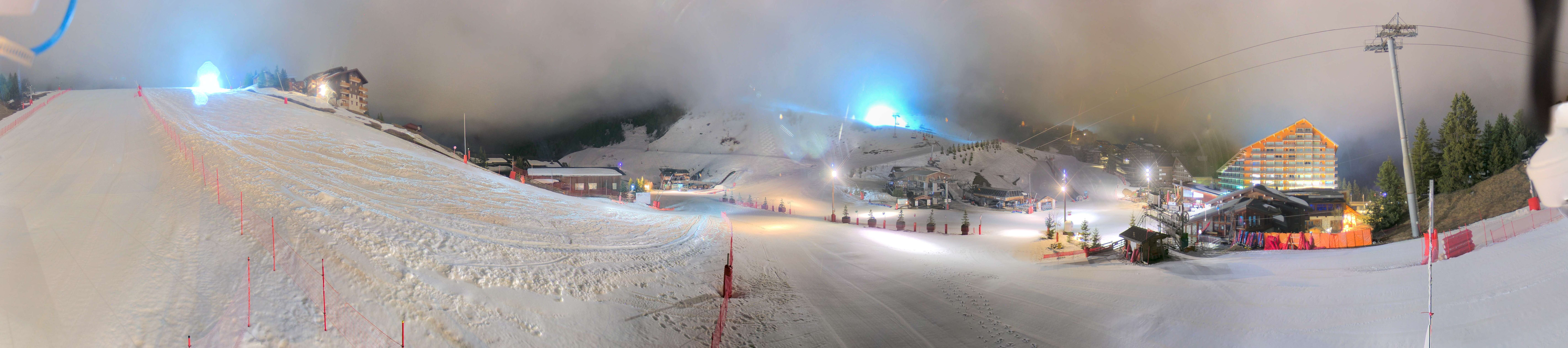 Panorama von Méribel-Mottaret: Blick auf den Talbereich, wo sich auch mehrere Übungslifte befinden.