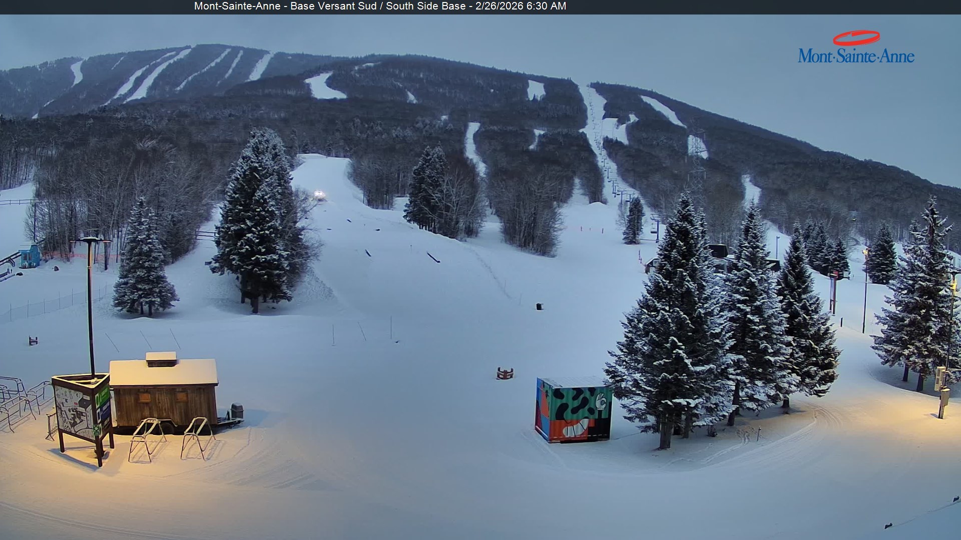 Diese Webcam steht im Tal des Mont Sainte Anne. Das Skigebiet hat einiges zu bieten. 31 Pisten, 9 Lifte und insgesamt 200 Kilometer Langlaufloipen, machen dieses Skigebiet zu einem der interessantesten Kanadas.