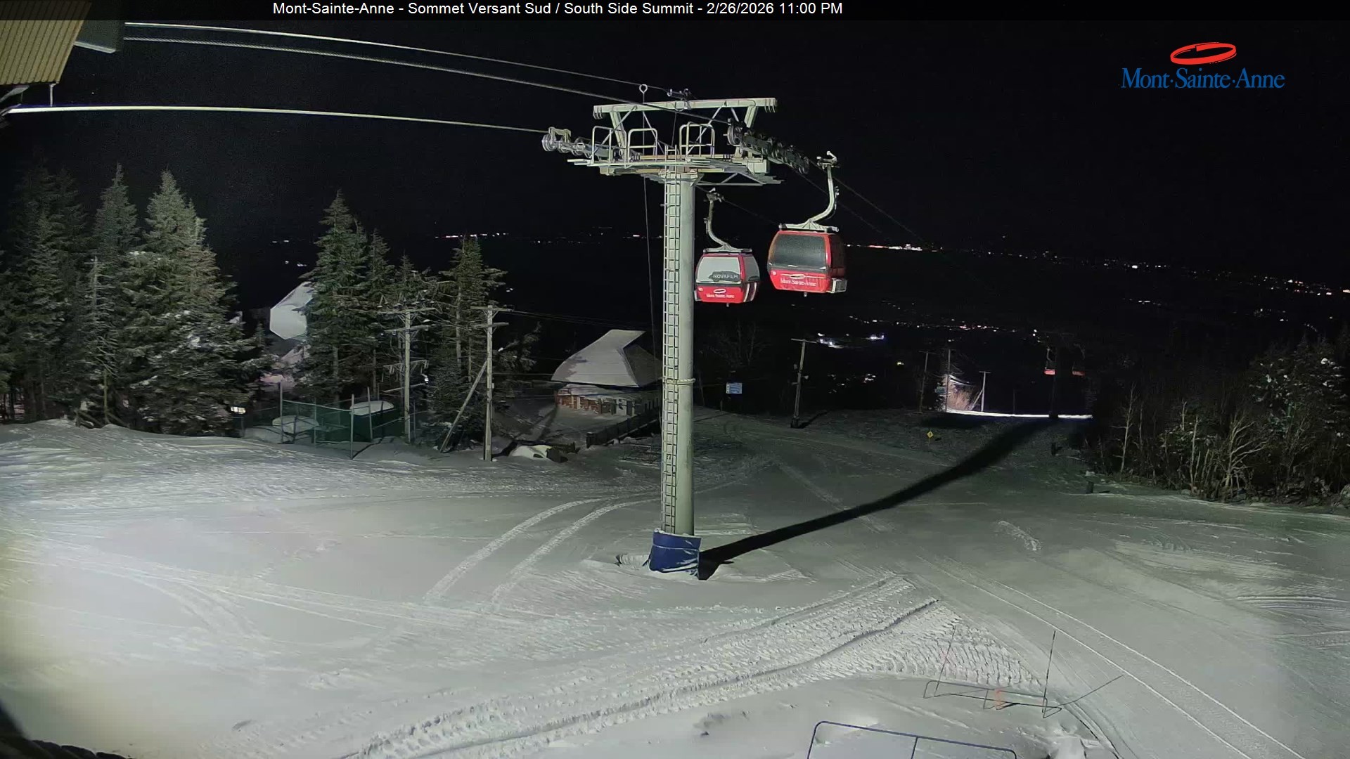 Diese Webcam zeigt den Blick vom Gipfel des Mont Sainte Anne nahe der kanadischen Großstadt Quebec Richtung Süden. Der Gipfel befindet sich ca. 800 Meter ü. NN. Das Skigebiet Mont Sainte Anne zählt mit seinen 31 Abfahrten zu den größeren Skigebieten in Kanada.