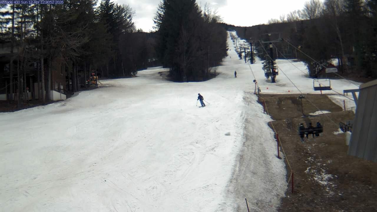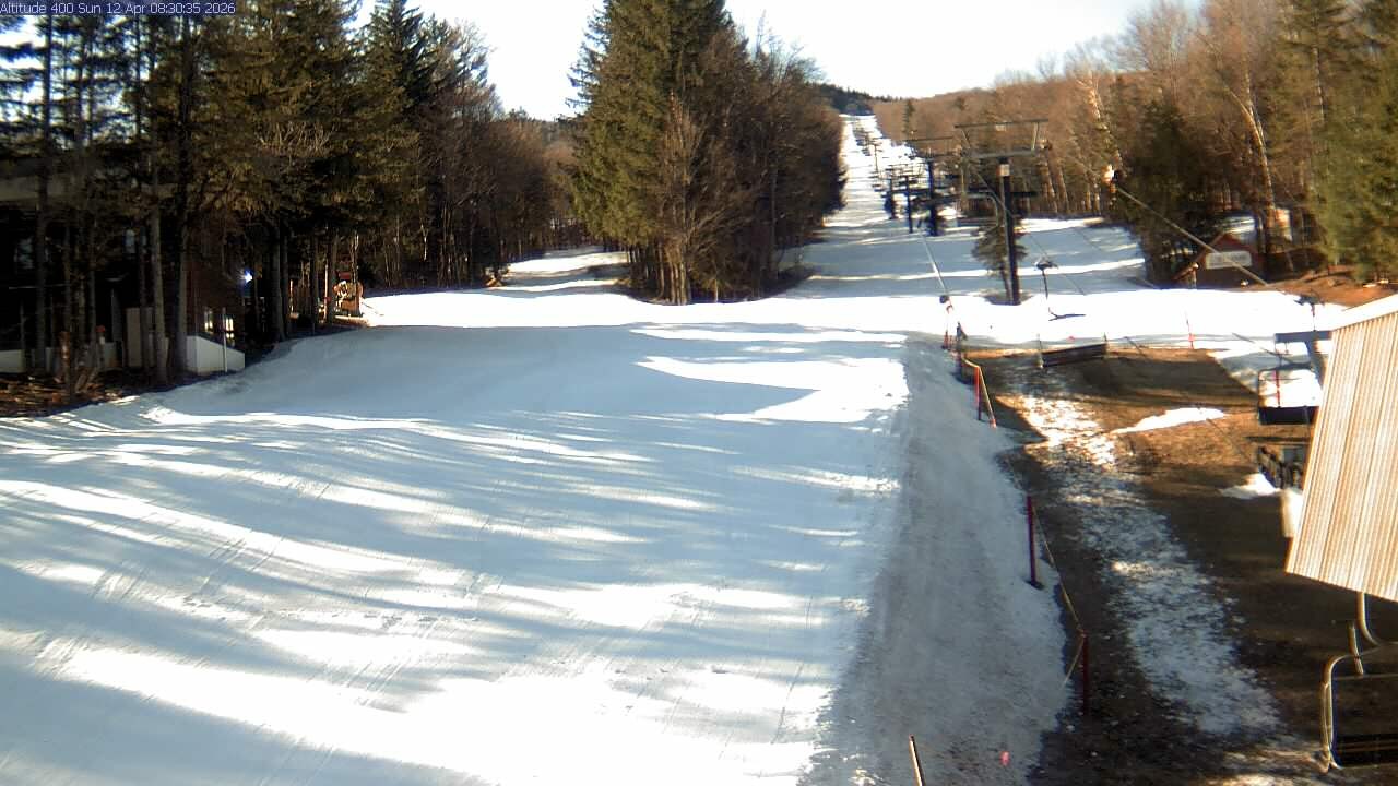 Archiviertes Webcam Bild: Mont Sutton: Aussicht auf die Talstation am 12.04.2026 um 14:42 Uhr 08:00