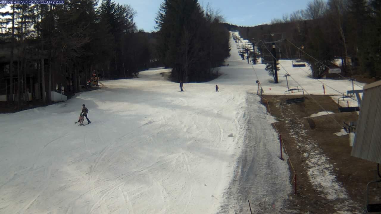 Archiviertes Webcam Bild: Mont Sutton: Aussicht auf die Talstation am 12.04.2026 um 16:42 Uhr 10:00