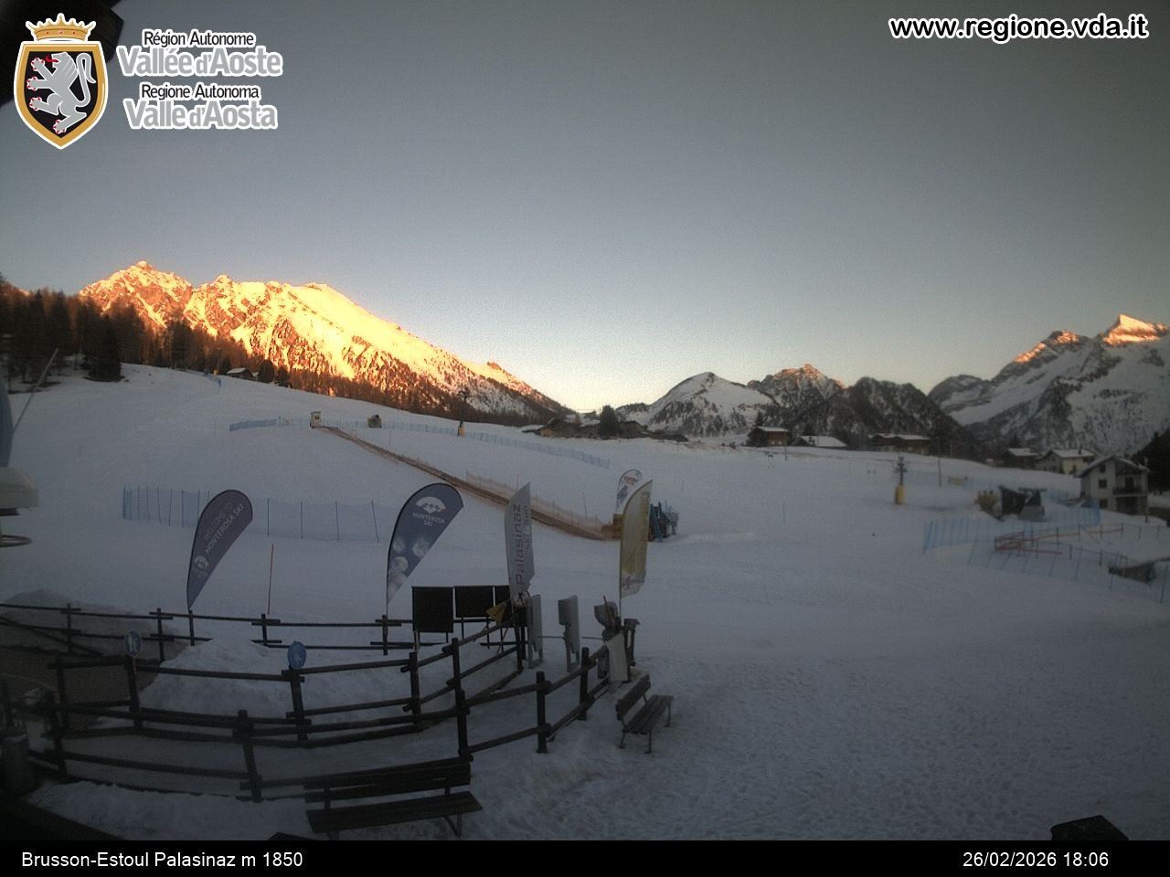 Archiviertes Webcam Bild: Brusson - Blick auf die Piste am 26 Feb 2026 um 18:46 Uhr Aktuell