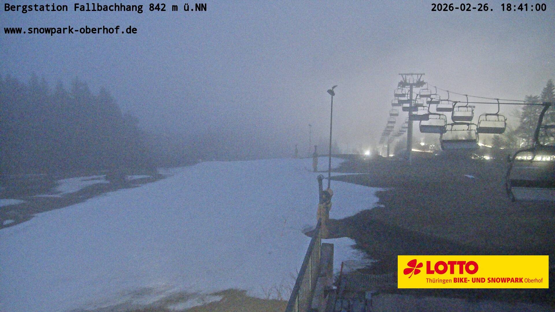 Archiviertes Webcam Bild: Oberhof: Fallbachhang Bergstation am 26 Feb 2026 um 02:57 Uhr 01:00