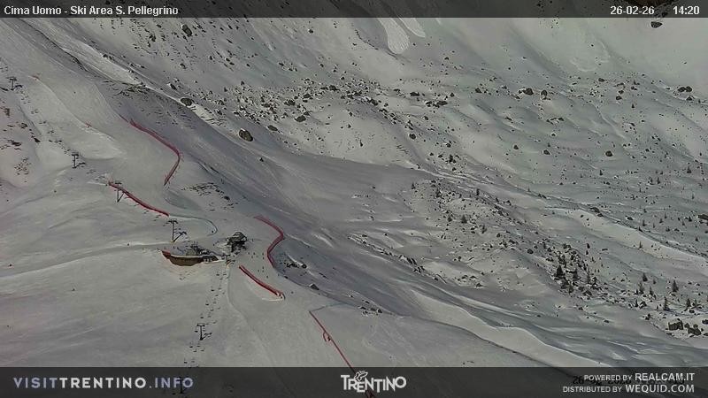 Archiviertes Webcam Bild: Fassatal - San Pellegrino Pass am 26 Feb 2026 um 14:36 Uhr 13:00