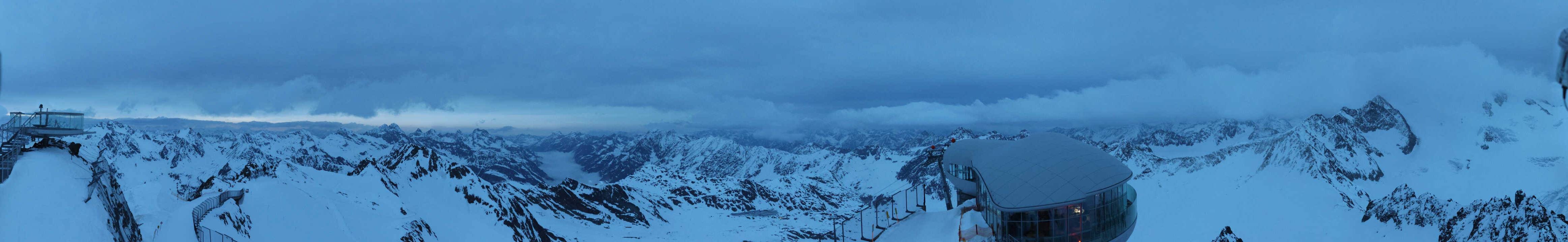 Die Webcam befindet sich am Pitztaler Gletscher und eröffnet dir den Blick auf das auf einer Höhe von 3440 Meter gelegene Café 3440. Zudem kannst du die umliegenden Dreitausender bewundern. Darunter auch die Wildspitze, den höchsten Berg Nordtirols.