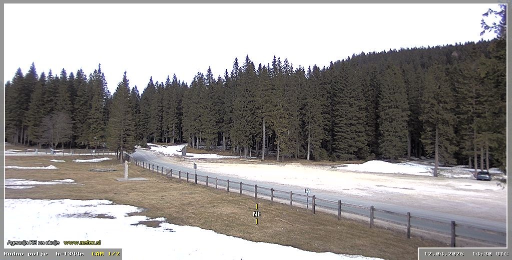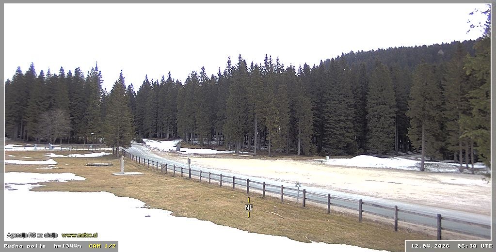 Archiviertes Webcam Bild: Pokljuka: Biathlonstadion Eingang am 12.04.2026 um 07:49 Uhr 07:00