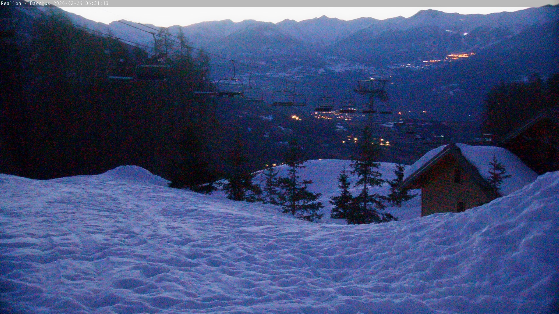 Archived webcam image showing Mountain station of the Chabrières chair lift on 26 Feb 2026 at 02:11 01:00