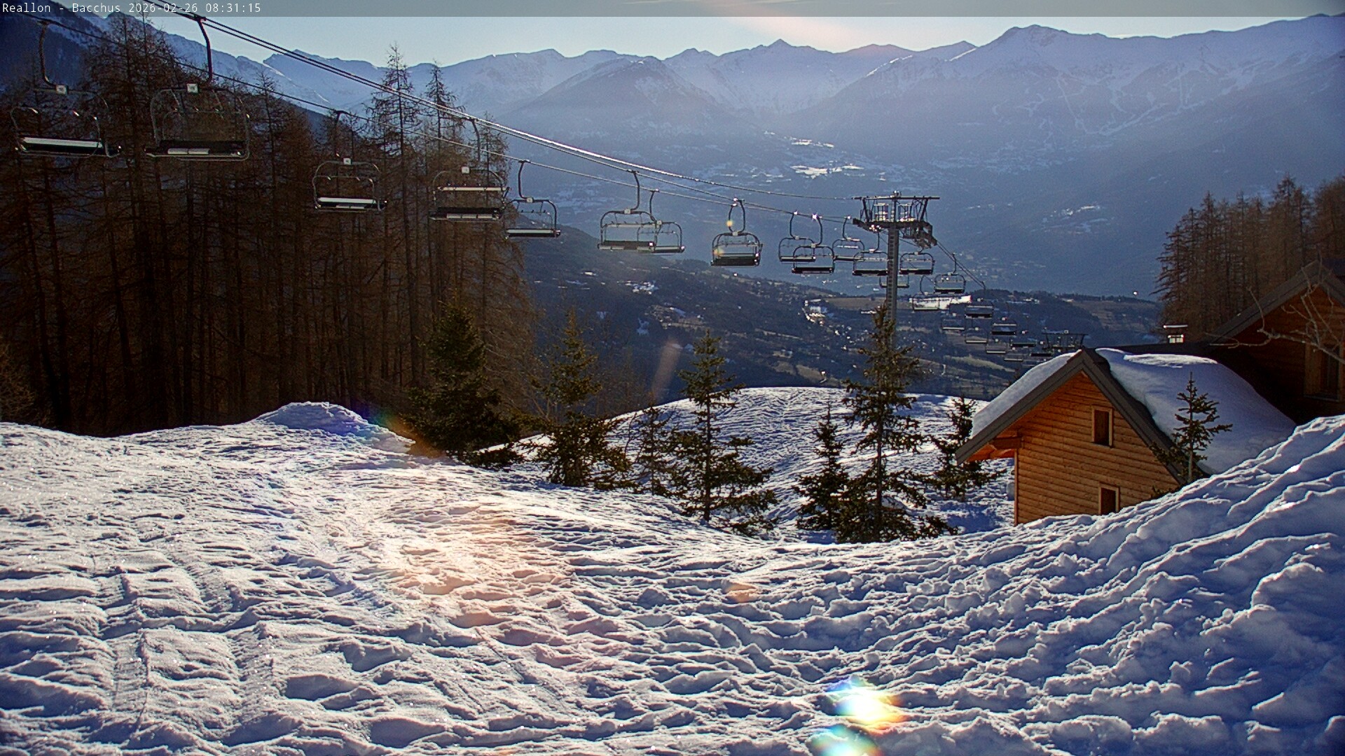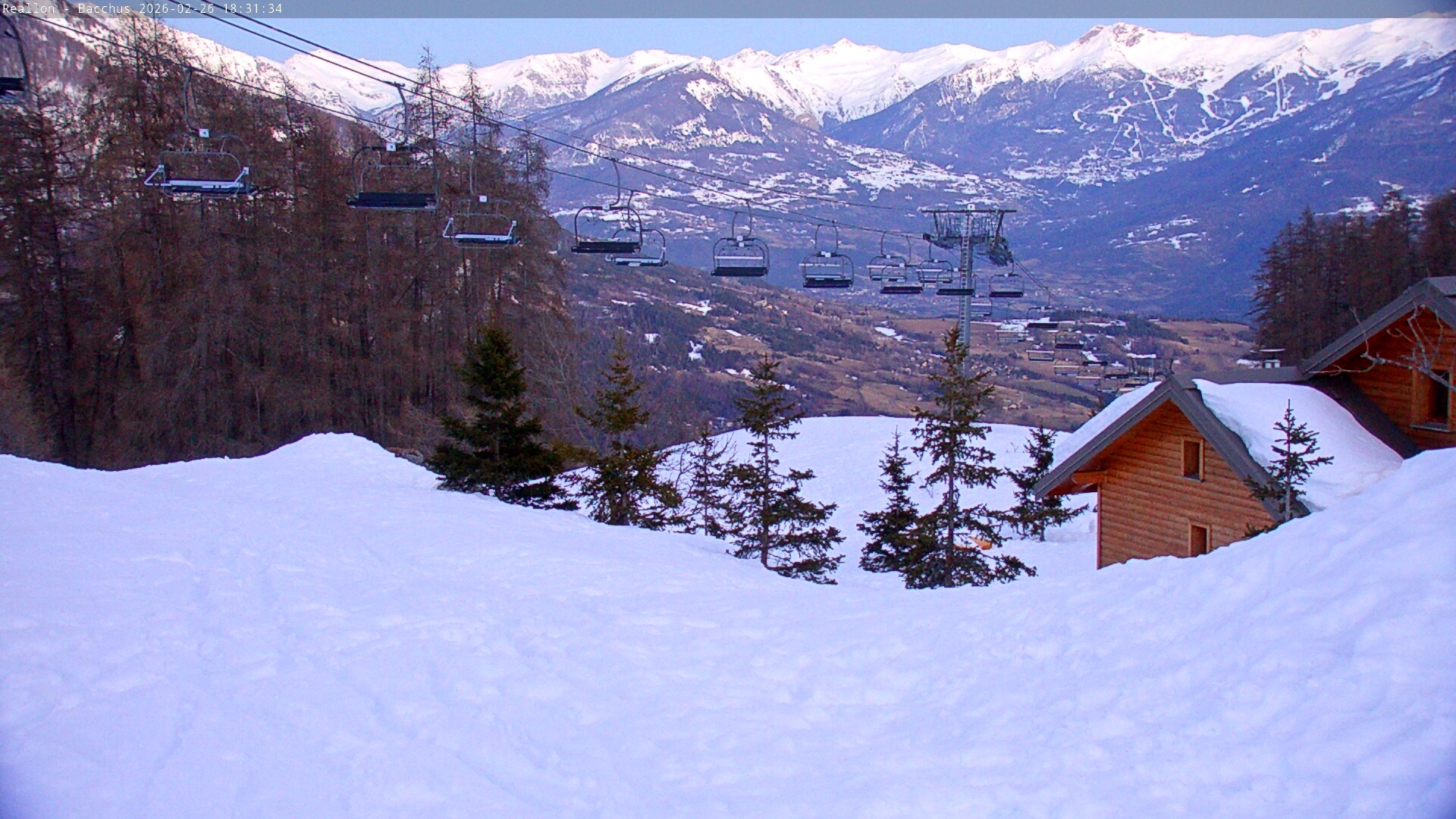 Archived webcam image showing Mountain station of the Chabrières chair lift on 26 Feb 2026 at 10:11 09:00