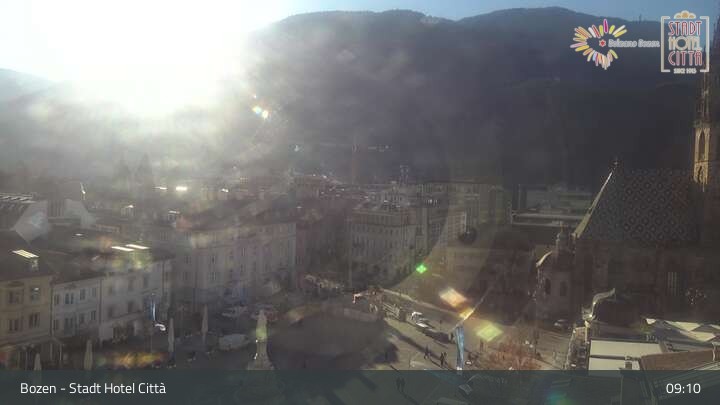 Archived webcam image showing Bolzano - Walther Square on 26 Feb 2026 at 09:05 08:00