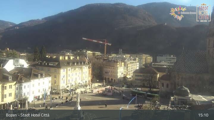Archived webcam image showing Bolzano - Walther Square on 26 Feb 2026 at 15:05 Aktuell
