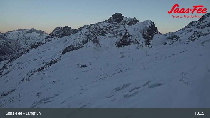 Archiviertes Webcam Bild: Saas-Fee: Bergstation Längfluhbahn am 26 Feb 2026 um 05:02 Uhr 04:00