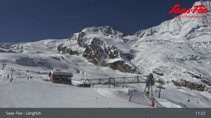 Archiviertes Webcam Bild: Saas-Fee: Bergstation Längfluhbahn am 26 Feb 2026 um 11:02 Uhr 10:00