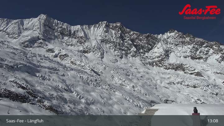 Archiviertes Webcam Bild: Saas-Fee: Bergstation Längfluhbahn am 26 Feb 2026 um 13:02 Uhr 12:00