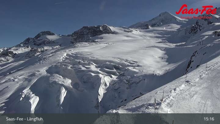 Archiviertes Webcam Bild: Saas-Fee: Bergstation Längfluhbahn am 26 Feb 2026 um 15:02 Uhr 14:00