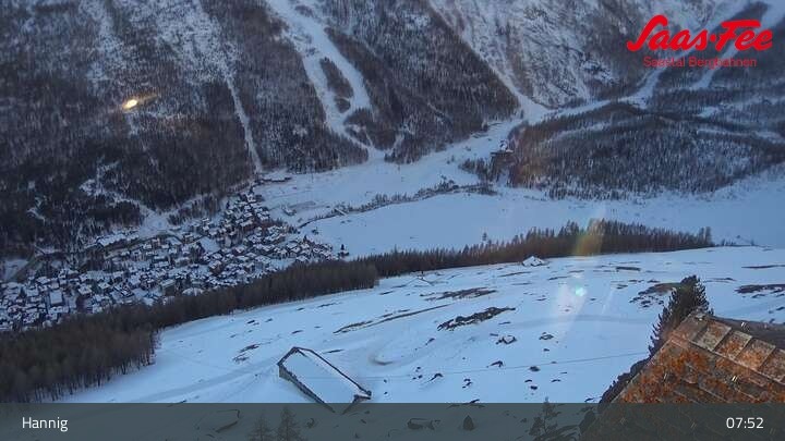 Archived webcam image showing Saas-Fee: Top station Hannig on 26 Feb 2026 at 05:28 04:00