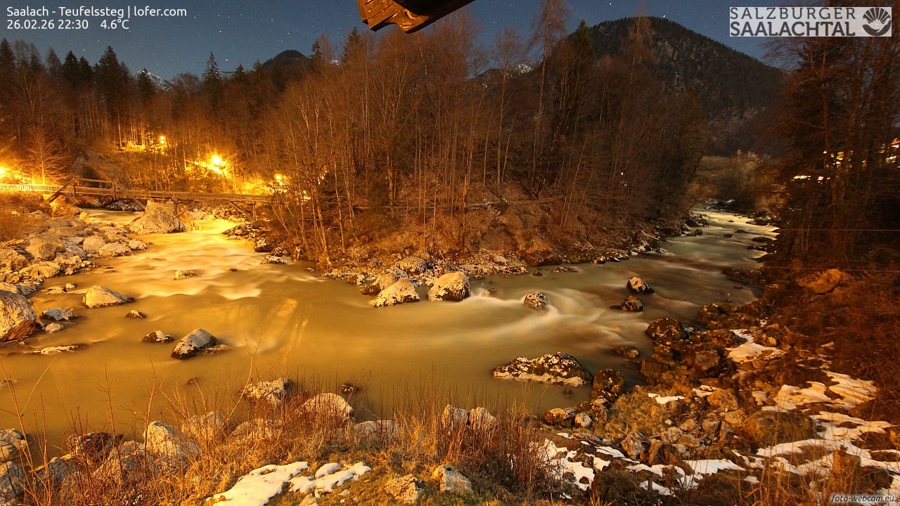 Die Webcam ist am Teufelssteg bei Lofer positioniert und zeigt nach Osten zur Saalach.
