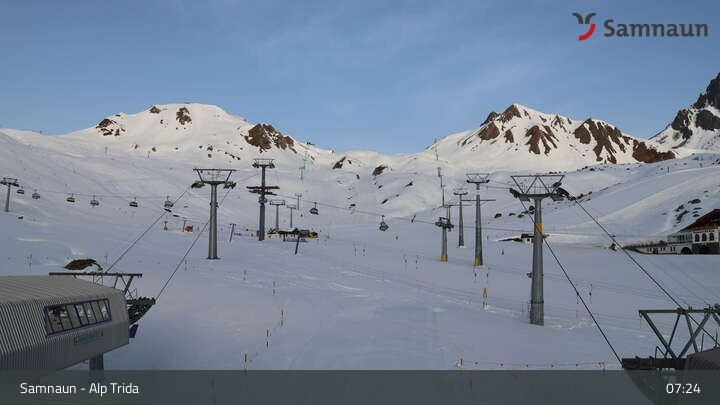 Archiviertes Webcam Bild: Samnaun - Alp Trida am 12.04.2026 um 07:07 Uhr 07:00