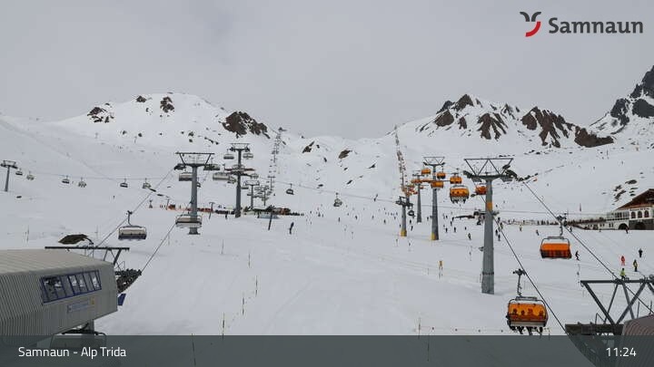 Archiviertes Webcam Bild: Samnaun - Alp Trida am 12.04.2026 um 11:07 Uhr 11:00