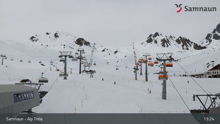 Archiviertes Webcam Bild: Samnaun - Alp Trida am 12.04.2026 um 13:07 Uhr 13:00