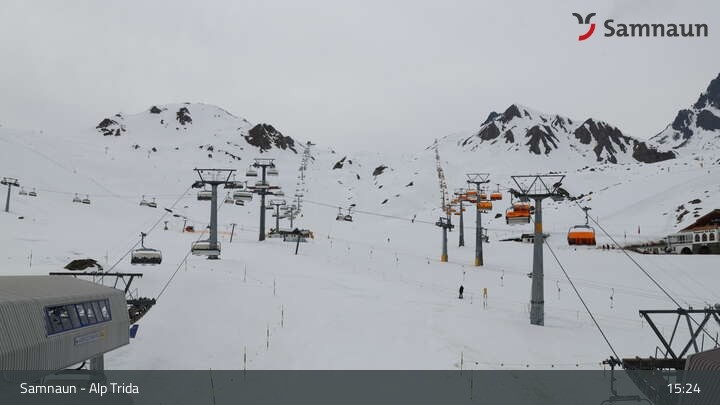 Archiviertes Webcam Bild: Samnaun - Alp Trida am 12.04.2026 um 15:07 Uhr 15:00