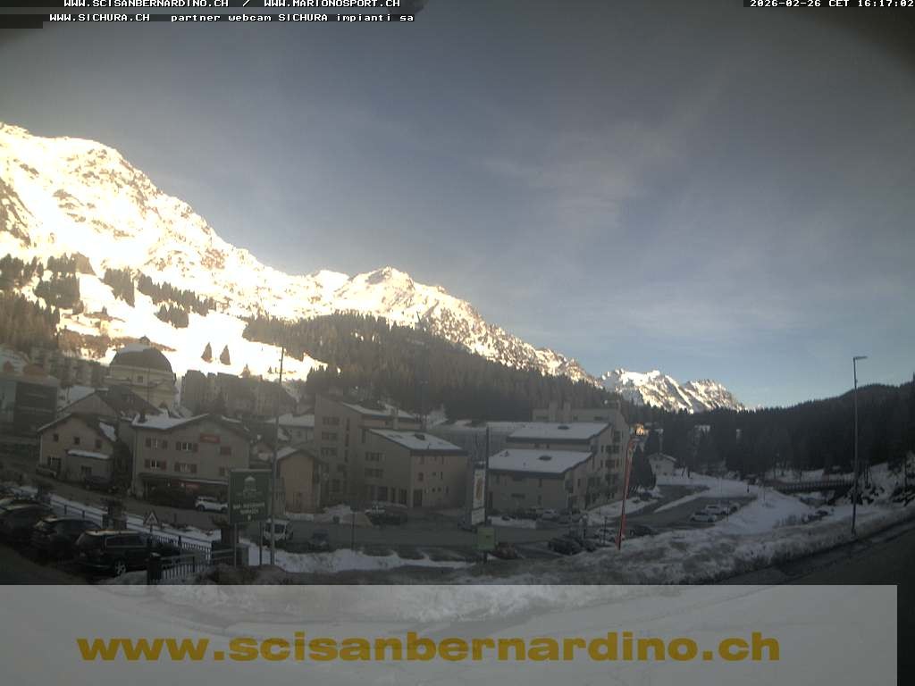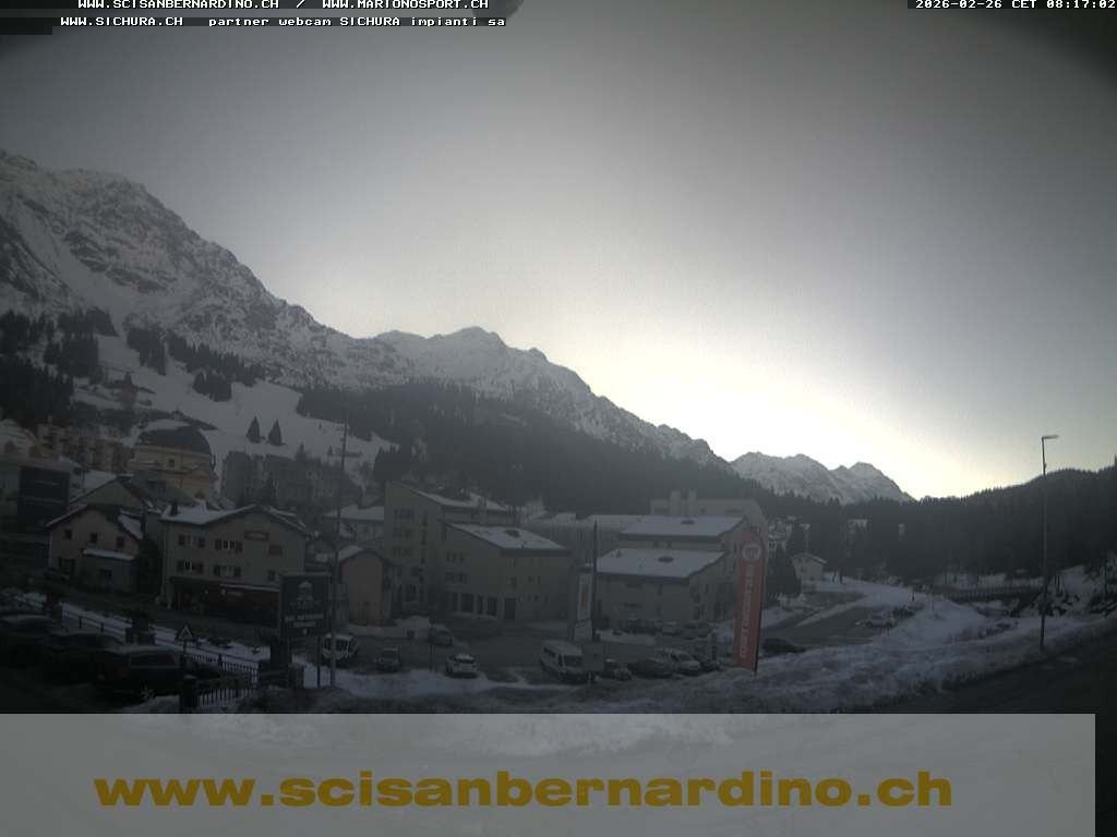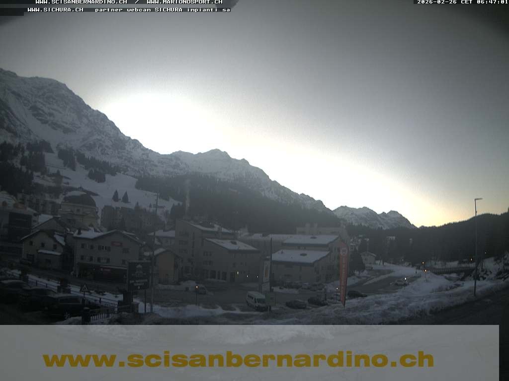 Archived webcam image showing Pian Cales - San Bernardino on Feb 26, 2026 at 6:10 AM 00:00
