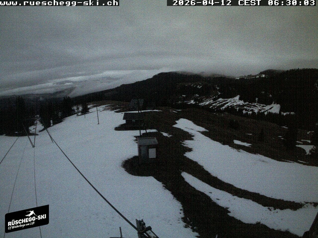 Archiviertes Webcam Bild: Blick auf die Bergstation Lischboden im Skigebiet Rüschegg am 12.04.2026 um 06:15 Uhr 06:00