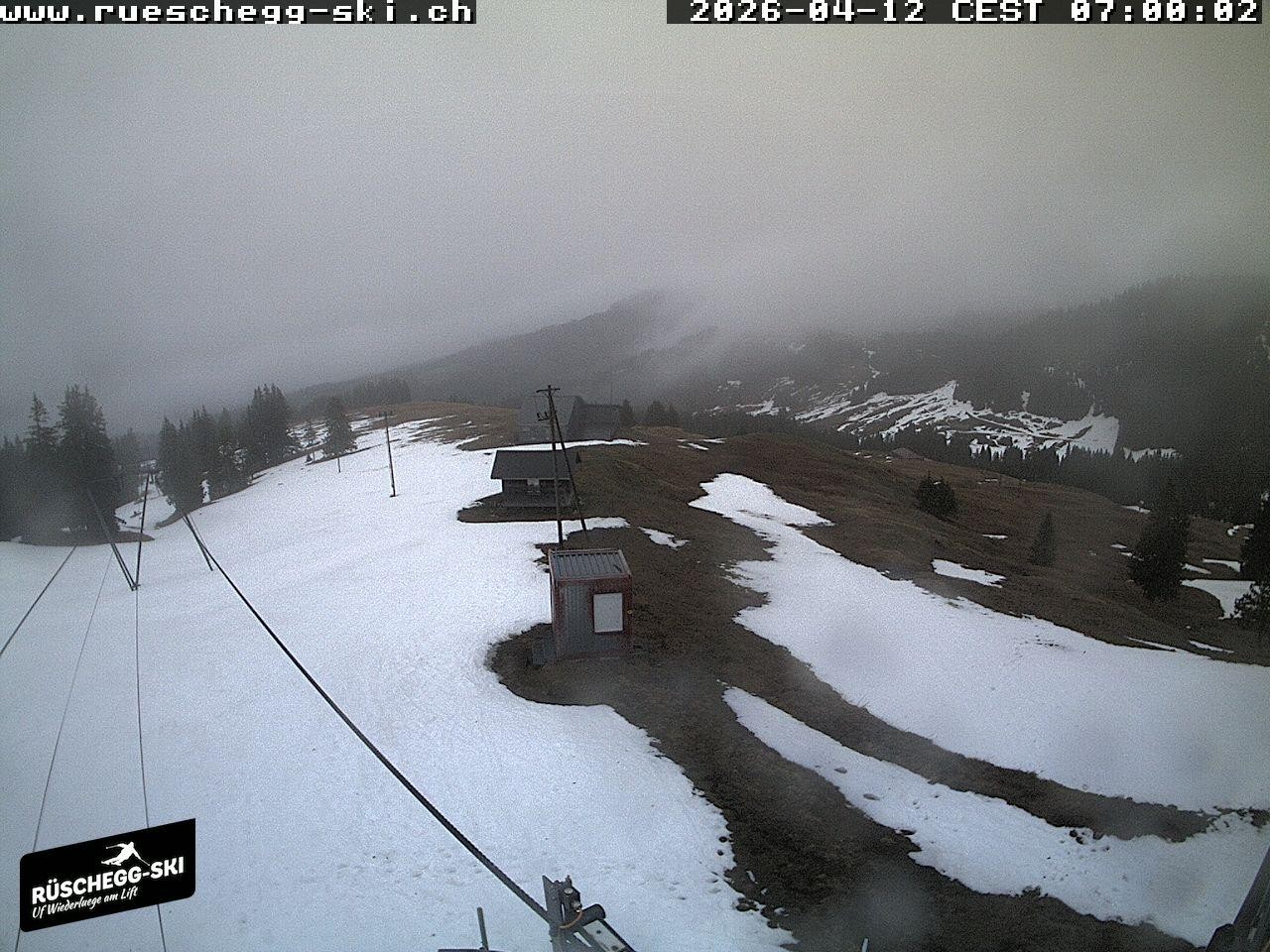 Archiviertes Webcam Bild: Blick auf die Bergstation Lischboden im Skigebiet Rüschegg am 12.04.2026 um 07:15 Uhr 07:00