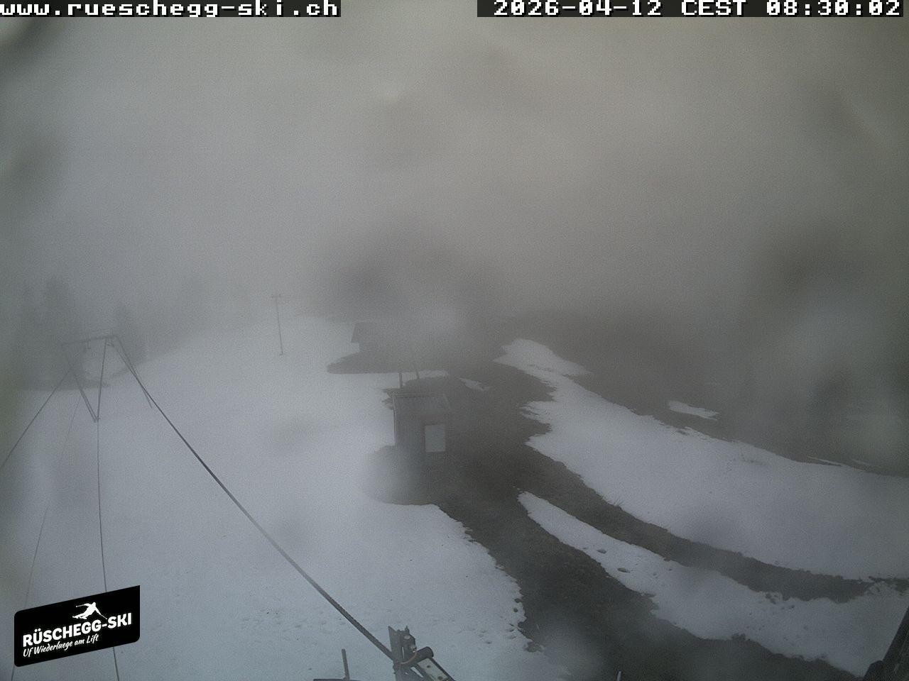 Archiviertes Webcam Bild: Blick auf die Bergstation Lischboden im Skigebiet Rüschegg am 12.04.2026 um 08:15 Uhr 08:00