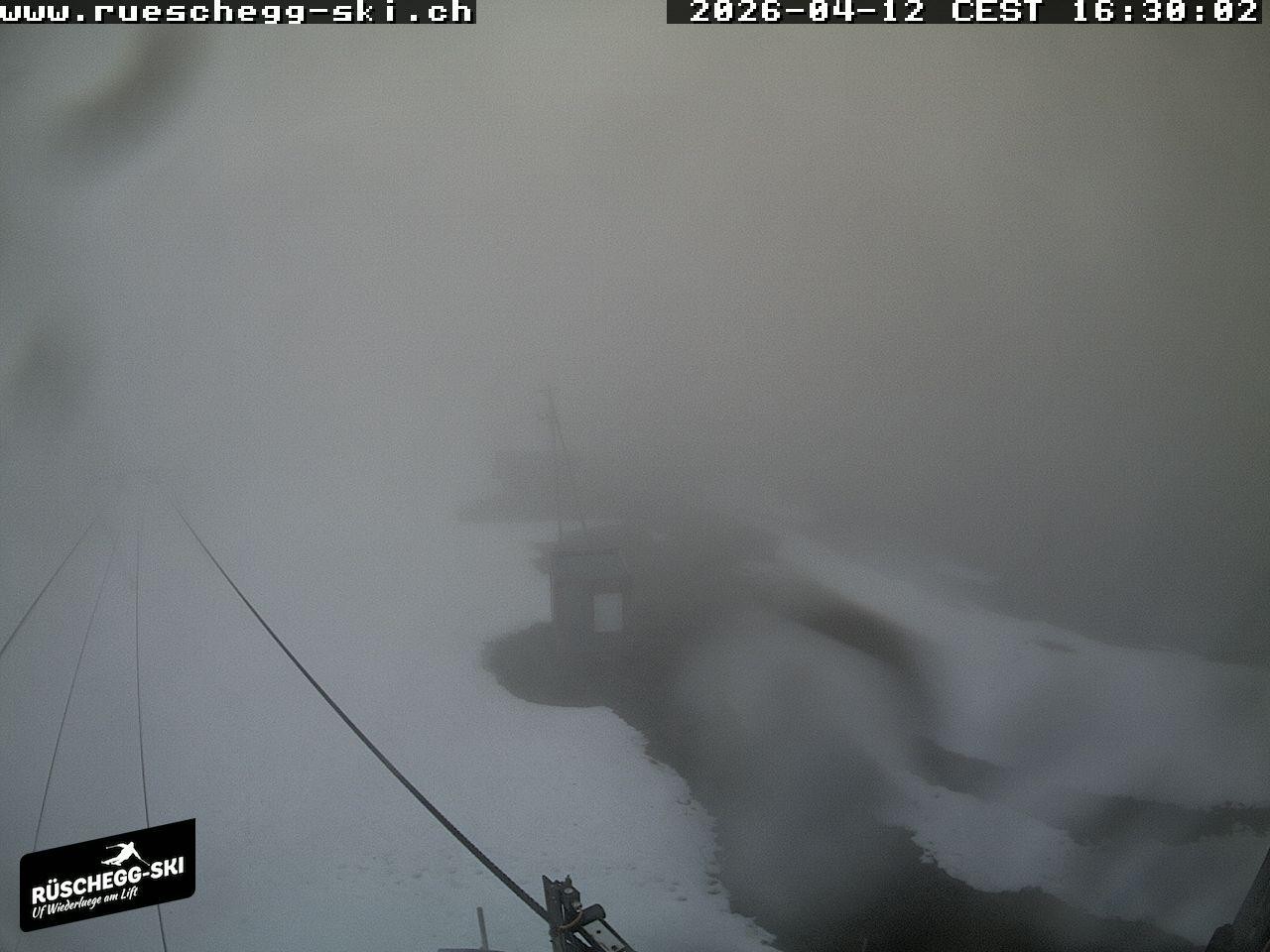 Archiviertes Webcam Bild: Blick auf die Bergstation Lischboden im Skigebiet Rüschegg am 12.04.2026 um 16:15 Uhr 16:00