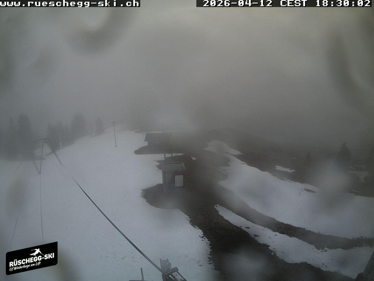 Archiviertes Webcam Bild: Blick auf die Bergstation Lischboden im Skigebiet Rüschegg am 12.04.2026 um 18:15 Uhr 18:00