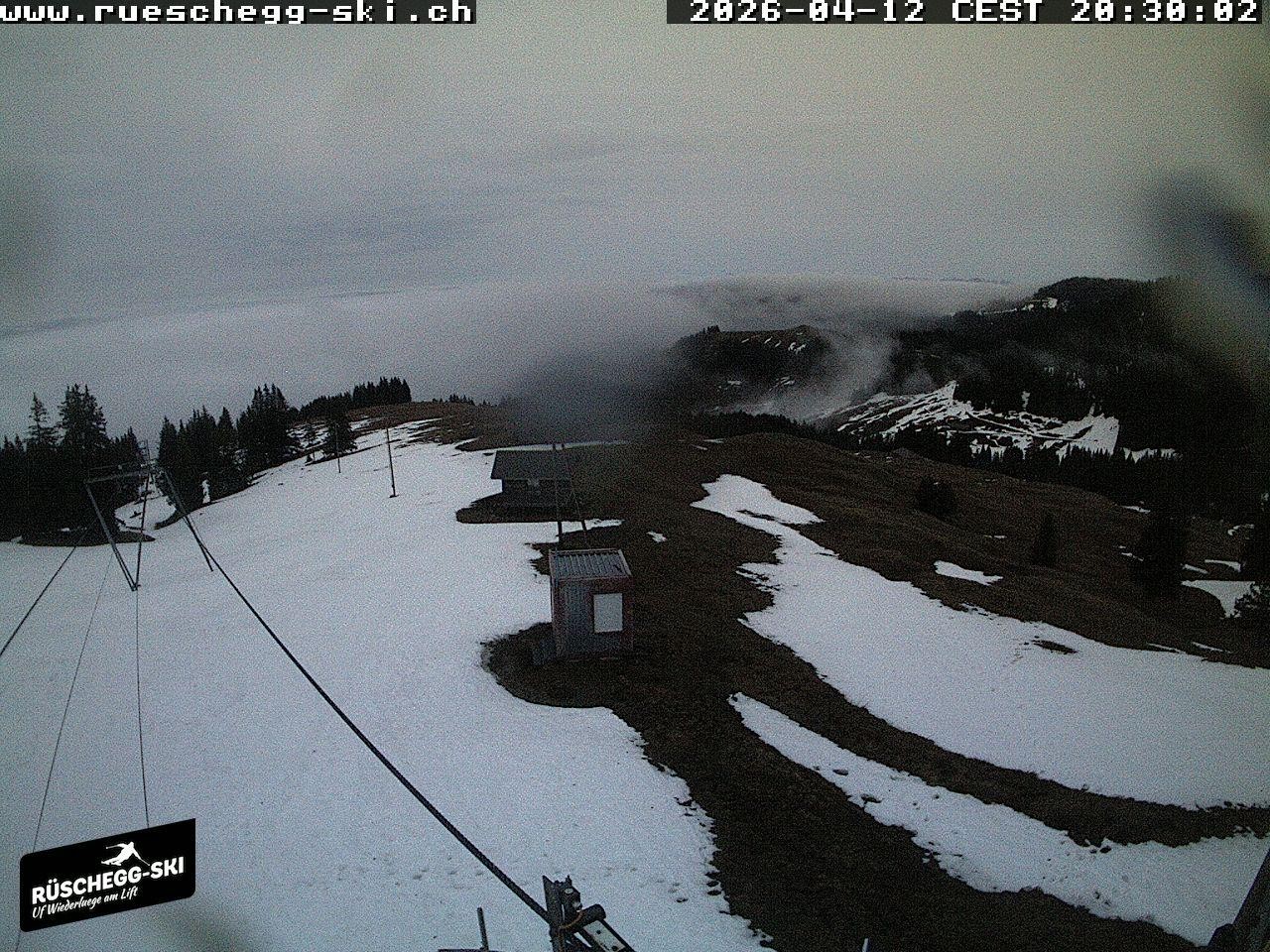Archiviertes Webcam Bild: Blick auf die Bergstation Lischboden im Skigebiet Rüschegg am 12.04.2026 um 20:15 Uhr 20:00