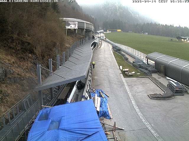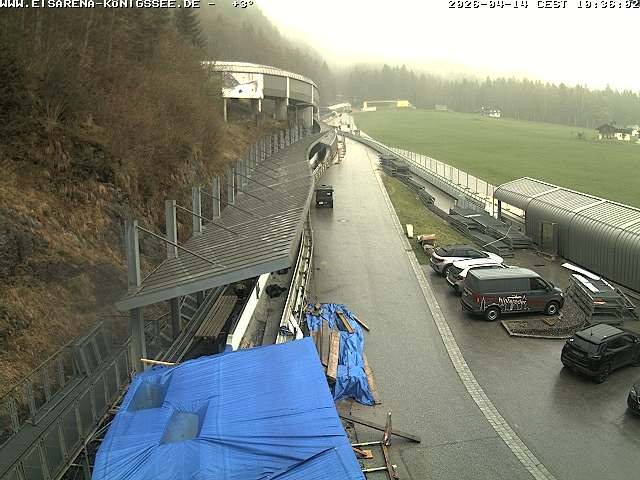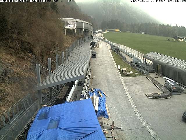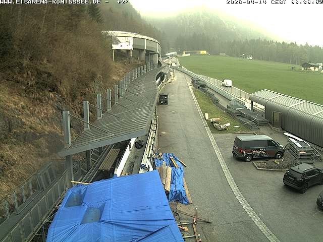 Archiviertes Webcam Bild: Eisarena Königssee: Blick auf die Bobbahn am 14.04.2026 um 06:55 Uhr 06:00