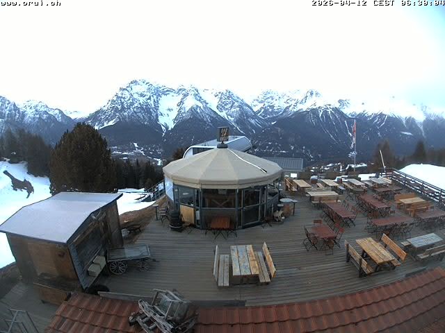 Archiviertes Webcam Bild: Scuol: Bergrestaurant Prümaran Prui am 12.04.2026 um 06:13 Uhr 06:00