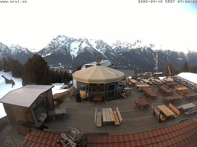 Archiviertes Webcam Bild: Scuol: Bergrestaurant Prümaran Prui am 12.04.2026 um 07:13 Uhr 07:00