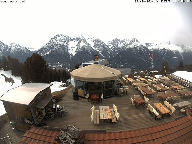 Archiviertes Webcam Bild: Scuol: Bergrestaurant Prümaran Prui am 12.04.2026 um 10:13 Uhr 10:00