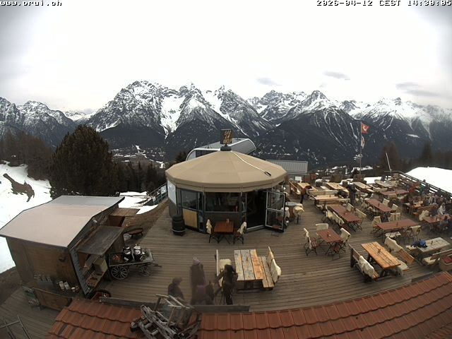Archiviertes Webcam Bild: Scuol: Bergrestaurant Prümaran Prui am 12.04.2026 um 14:13 Uhr 14:00